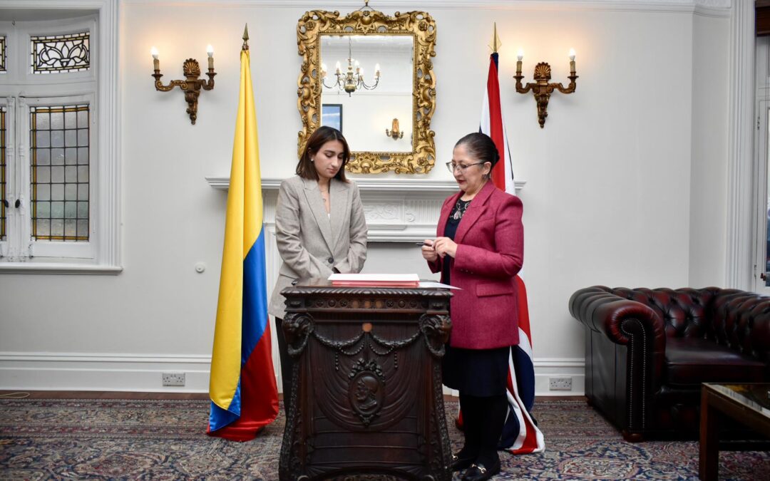 La embajadora de Colombia ante el Reino Unido, Laura Sarabia, tomó hoy posesión oficial de su cargo en la sede de la Embajada de Colombia en Londres.